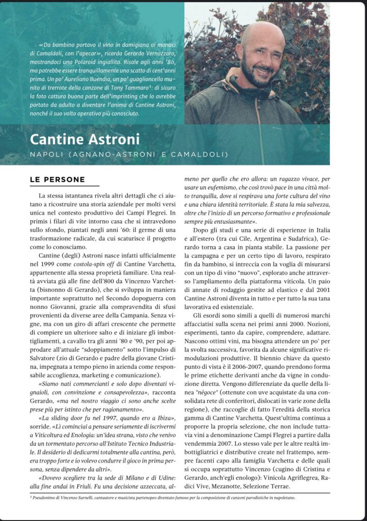 All’interno della pubblicazione trova spazio anche Cantine Astroni, raccontata attraverso la storia della famiglia Varchetta, l’evoluzione del progetto aziendale e il legame profondo con il paesaggio vulcanico flegreo.